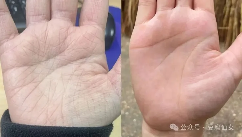 密密麻麻的細紋,精神內耗多,要心靜才能好運。手紋多表示煩腦由外面因素,假如社會做事很辛苦,生活情況不好。